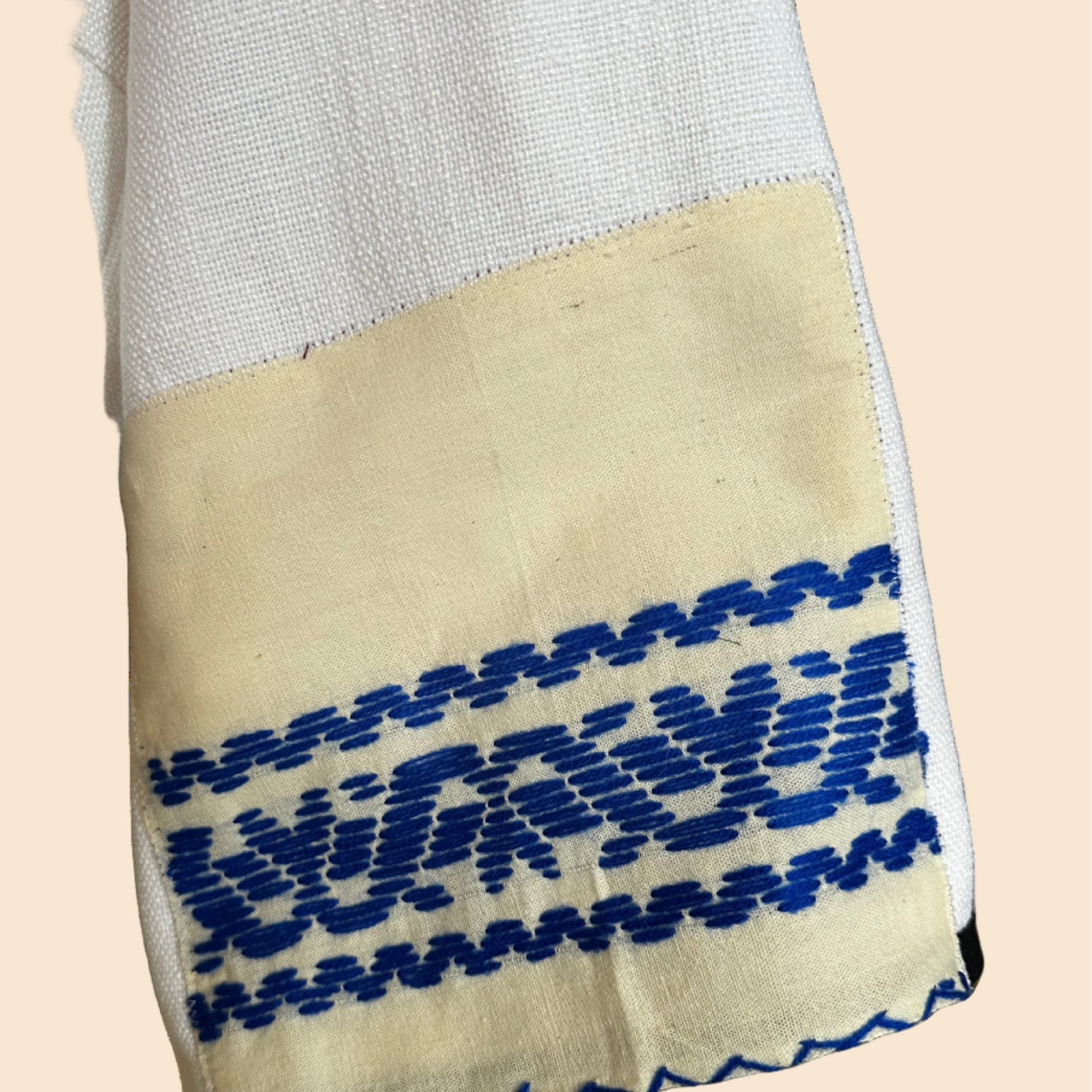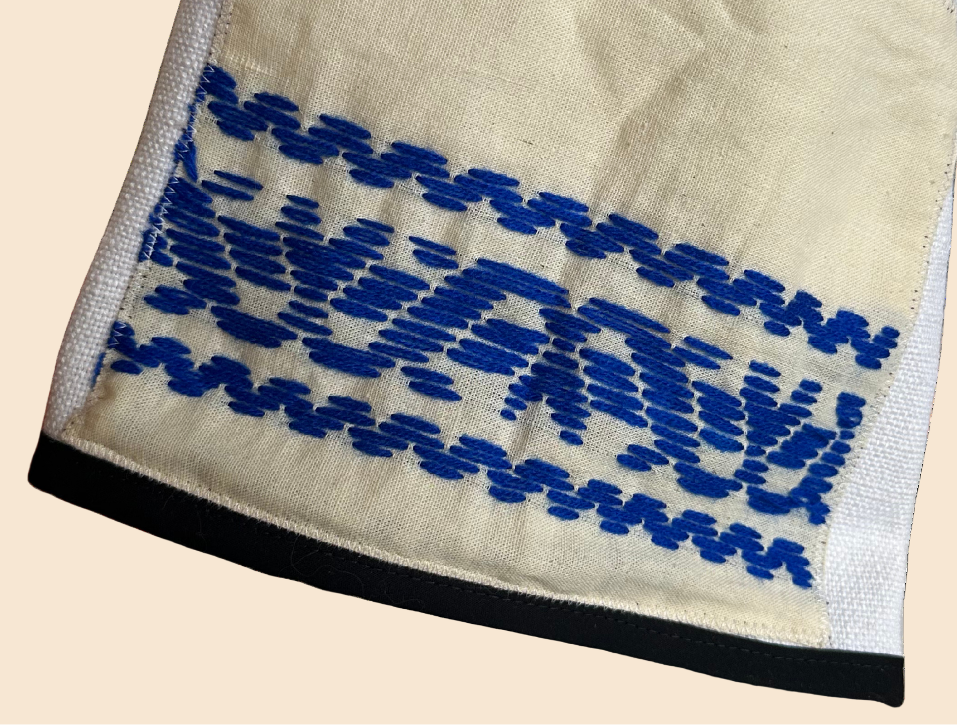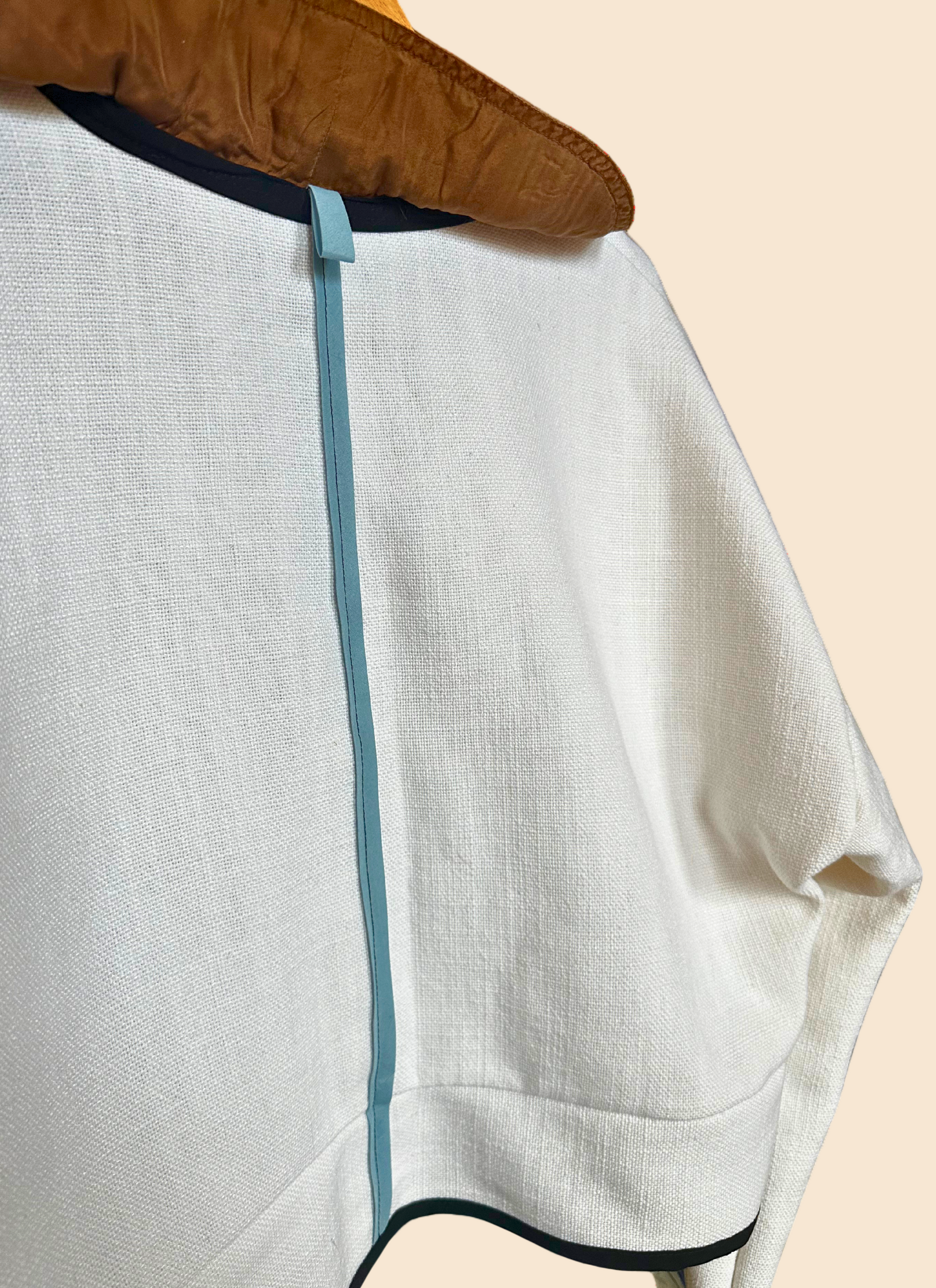 front tie closure. double-layer & tiered brown silk collar. bias & patchwork details. tab on top back. wide sleeves. unique sleeve hems. adjustable fit.